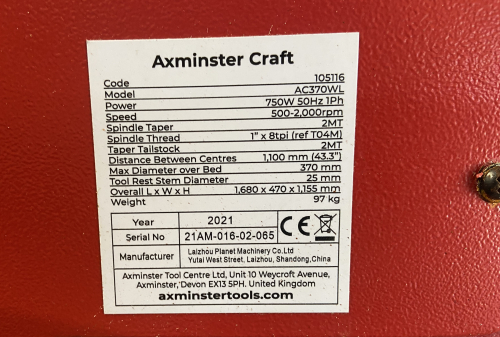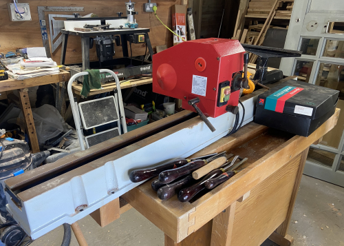 Sadly, due to bereavement, Andrew is selling his late brother's 5 year old, lightly used lathe. Please see photographs. All items have been unused for a short period and would benefit from TLC. Andrew would prefer to sell all items as a package and they can be viewed by arrangement in Woodbury.