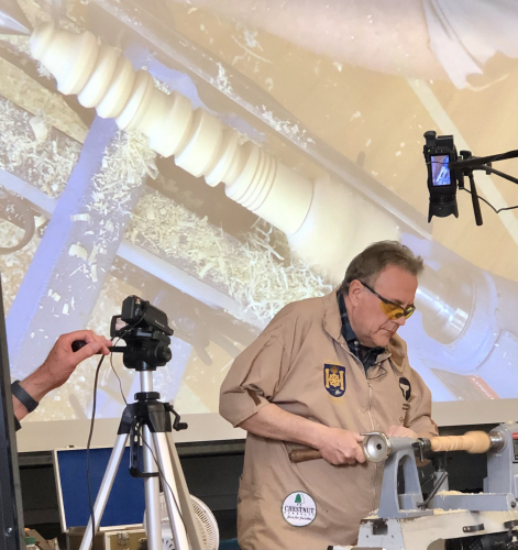 Gary kicked off by showing us the basic methods of turning coves and beads on a piece of pine using a round profile skew chisel.