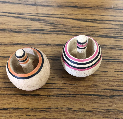 As if he had not turned enough he made a spinning top that when spun eventually turned upside down.