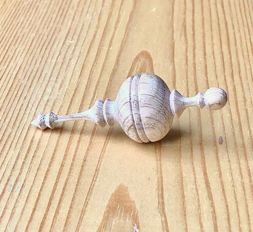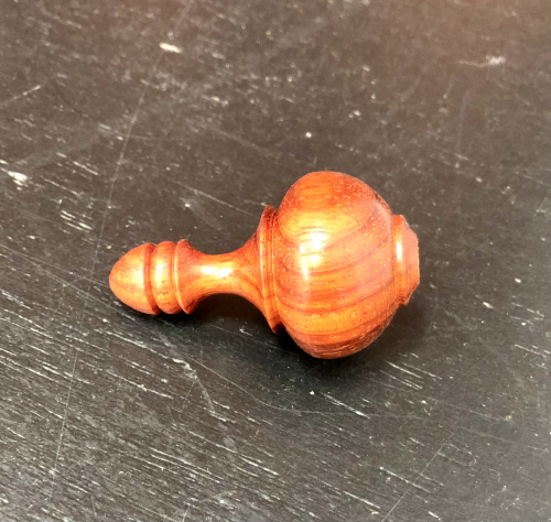 He went on to turn a spinning top using corian as the body Ebony as the twiddle bit and part of a plastic knitting needle for the point.