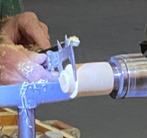 Getting the exact measurements when chasing threads is very important and he used a Vernia gauge to measure thee diameter.