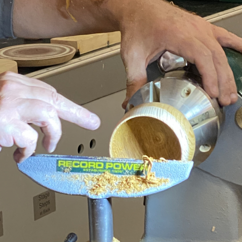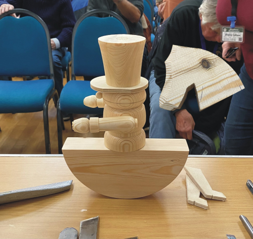 Colwin showed us how he sets about making his delightful rocking soldiers and started with turning the horses rocking body.