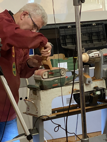 Stephen brought along his belt sander and finished off the scoop to a smooth finish.