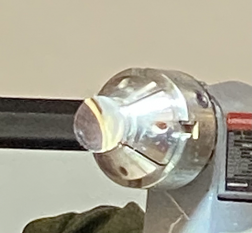 The bottom turned with a gripping surface to fit the "c" jaws of a chuck.
