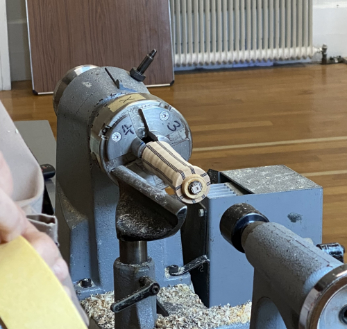 The handle was the turned around and the final shape turned and finished.