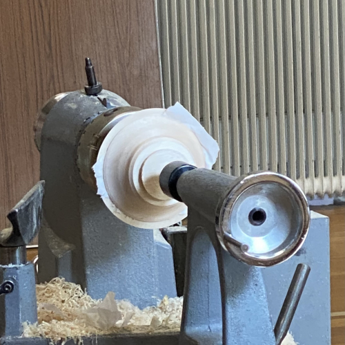 The lid was then turned around and a jam chuck used in combination with support from the tail stock to finish the top part.