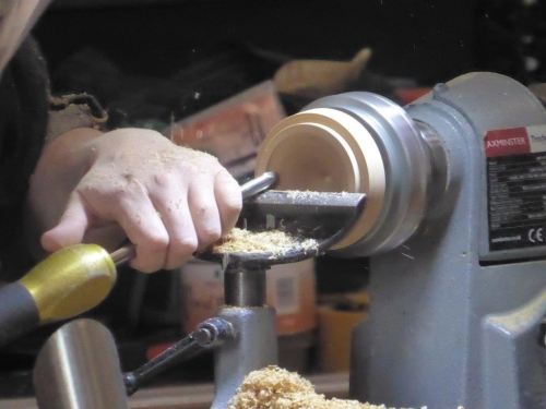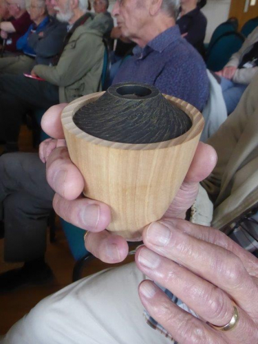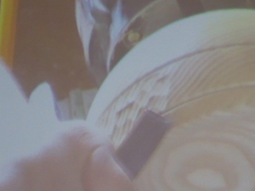 Emma showing us how to cut out the middle of the pot without the need to drill it out