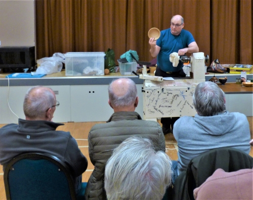 Peter showing an interested member a technique using super glue (CA) as a finish.