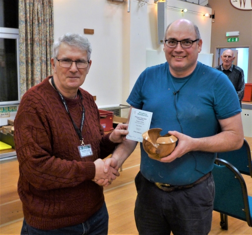 Joint winner Peter Johnson with his stylised rimmed bowl (with that great finish)