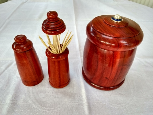 Wood from Graham Drury made two cocktail stick dispensers and a larger box with in internal tray with very close (piston) fit.