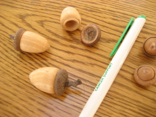 Made using real acorn cups and inserting a threaded piece of boxwood (female) then a hollowed (male) acorn, threads chased to fit. Are these the smallest boxes you've see?