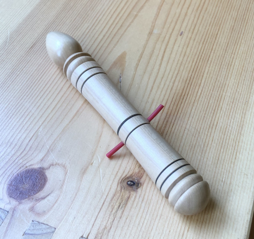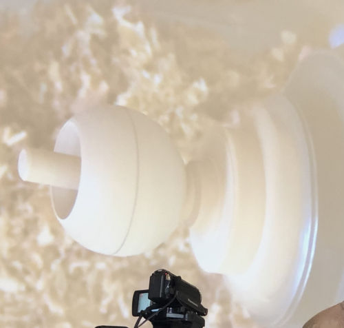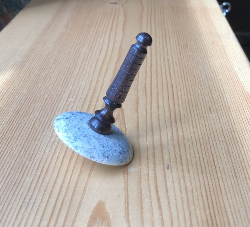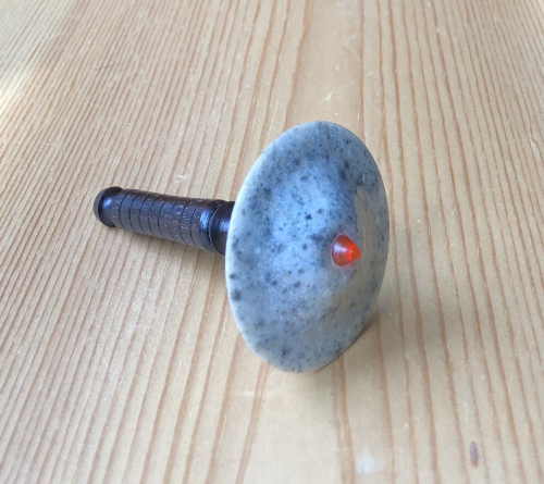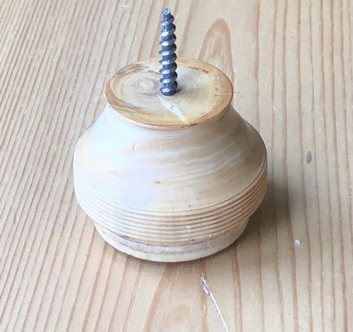 He went on to turn a spinning top using corian as the body Ebony as the twiddle bit and part of a plastic knitting needle for the point.