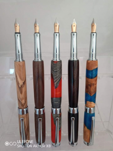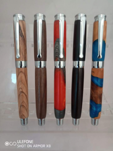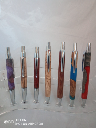 Woods from left to right: 1,6&7 maple burl and resin. 2&4 Olive. 3&5 pau Rosa. Parker refill
