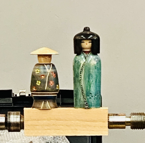 We had Robert Gliddon demonstrating for the first tonight, Robert showed us how he turns Japanese Kokeshi dolls.