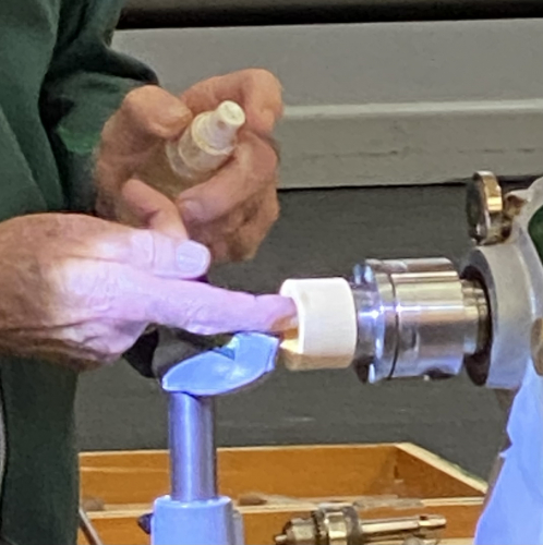 Our other demonstrator was Roger Hutton who demonstrated the fine art of thread chasing.