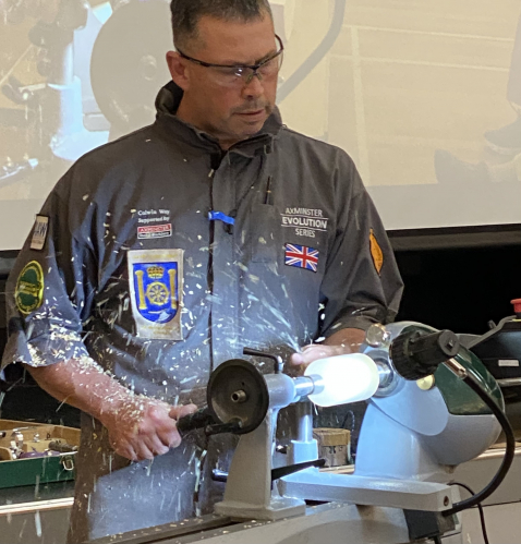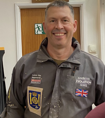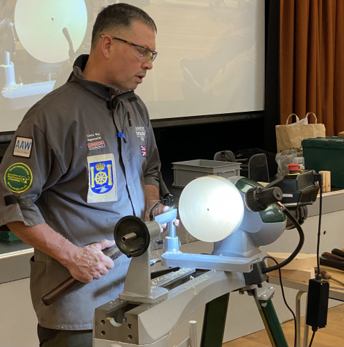 Colwin showed us how he sets about making his delightful rocking soldiers and started with turning the horses rocking body.