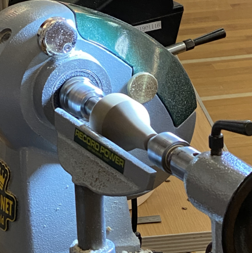 He carried on turning the main body head and waist area lightly sanding to a smooth finish.
