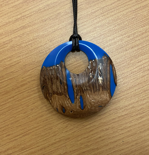 Colwin also makes pendants from wood and resin.