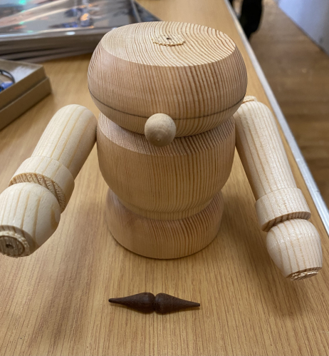 The moustache was also turned and the back sanded to fit the contour of the face.