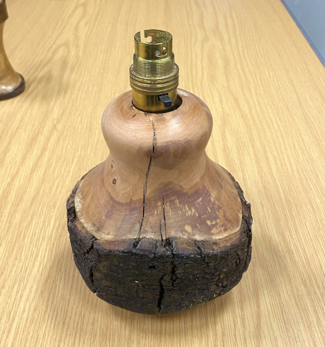 A natural edge lamp.