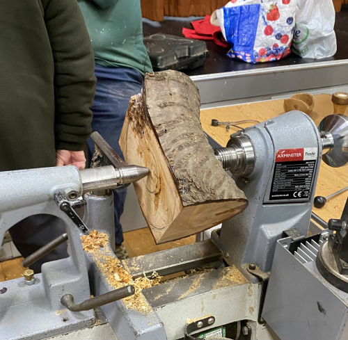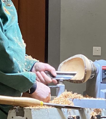 Peter went on to show members how to turn a natural edged winged bowl and mounted the log between centres.
