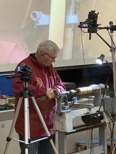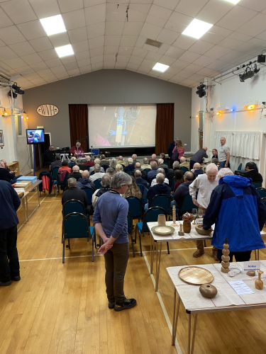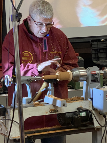 Excellent turn out tonight to watch Stephen Long demonstrating how he turns scoops and spoons .
