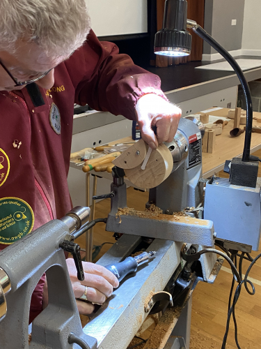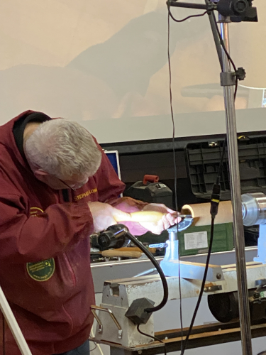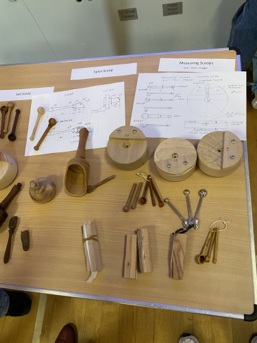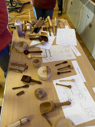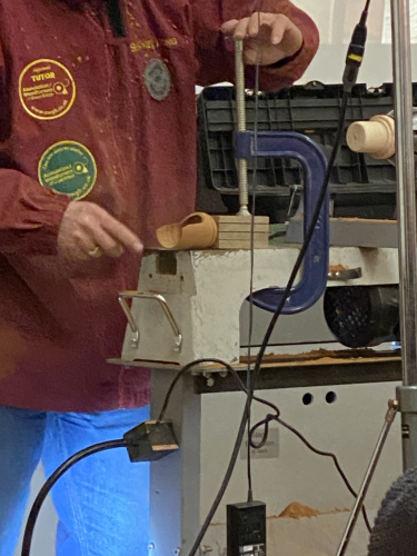 Stephen demonstrated his method on larger scoops and spoons using other home made jigs,