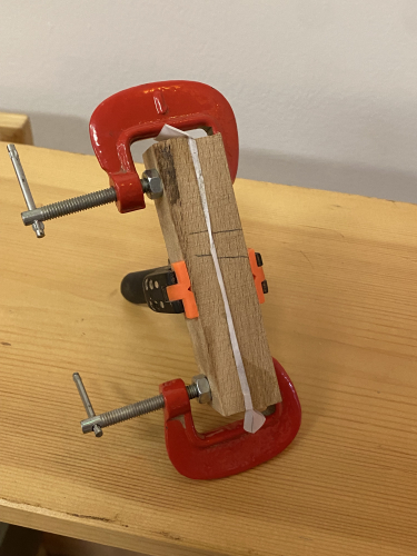 measuring type spoons, he paper joins to pieces of wood together clamps them together and leaves them to set.