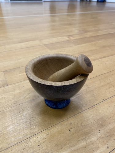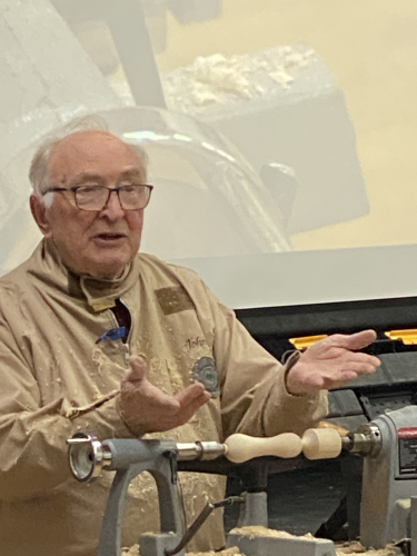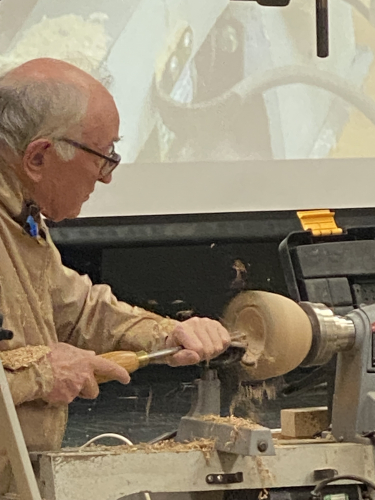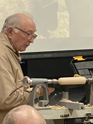 There was a good turn out of members to support John demonstrating how to turn a pestle and mortar, as the annual competitions includes a natural edge item john chose to turn the mortar in that style.