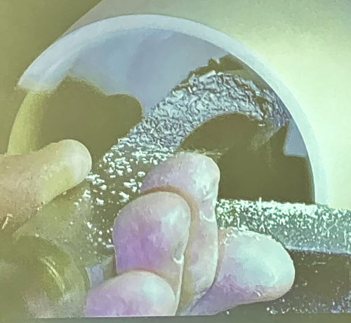 Moving around to the centre and turning the gouge to the "closed" position,