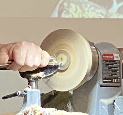 Colwin demonstrated the turning of what is known as a Wobble bowl, the bowl has no function as such and is just a novelty item that wobbles when you poke at it !!