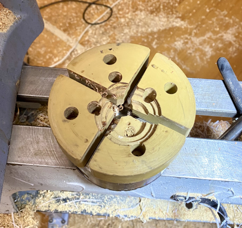 The bottom turned with a gripping surface to fit the "c" jaws of a chuck.