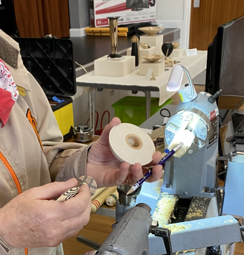 a very refreshing demonstration by Carlyn a well known laminated turner and a Yeoman of The Worshipful Company of Turners.