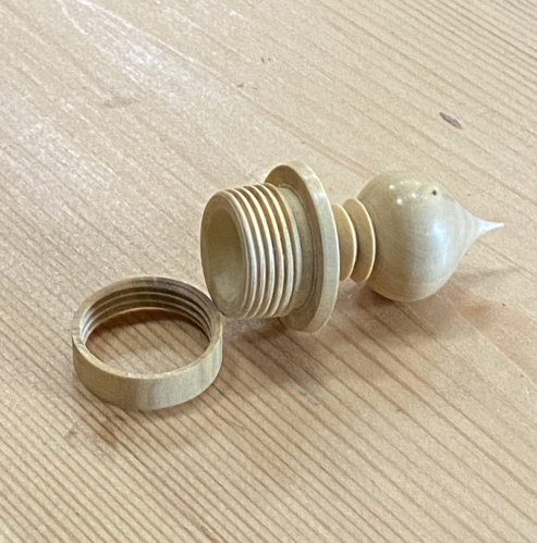 An insert was turned from box wood and threaded, then glued into the neck of the box.
