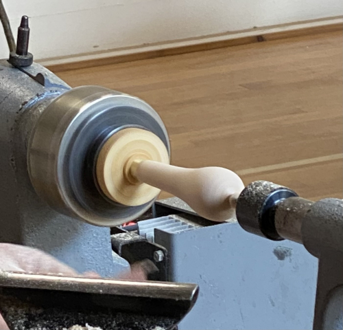 The handle was the turned around and the final shape turned and finished.