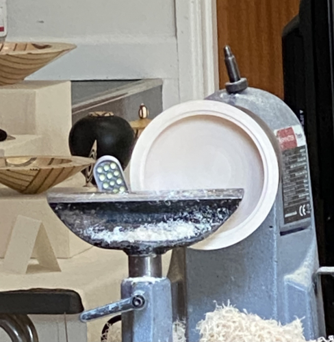 The lid was then turned around and a jam chuck used in combination with support from the tail stock to finish the top part.