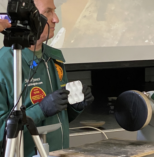 Tonight we where treated to a demonstration by Steve James who travelled up from Cornwall to enlighten us on colouring with paint so no shavings to clear up tonight !!.