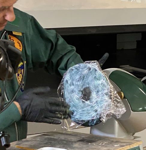 He covered the item with cling film whilst still wet and pressed it around all squishy like !!.