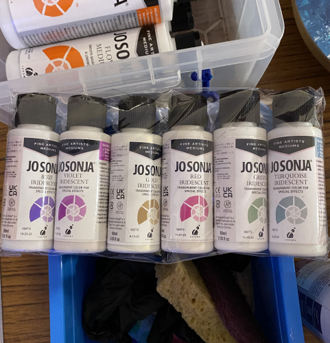 He had a mixing pallet rather like a egg poaching tray, as the paint medium is clear when decanted he marked each trough with the colour to identify them.