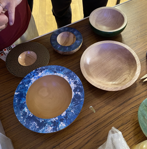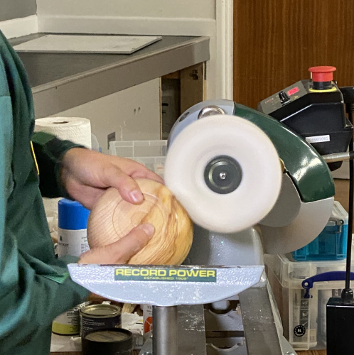 Steve brought along some turnings he made beforehand to save time. He mounted the turning and protected the lathe with some cardboard,
