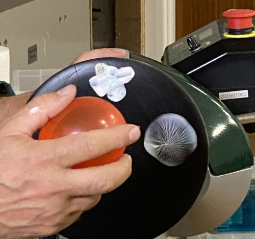 ( Steve insisted that 7psi was the correct pressure for the balloon ) he pressed the balloon onto the wet paint and you can see the effect in the picture.