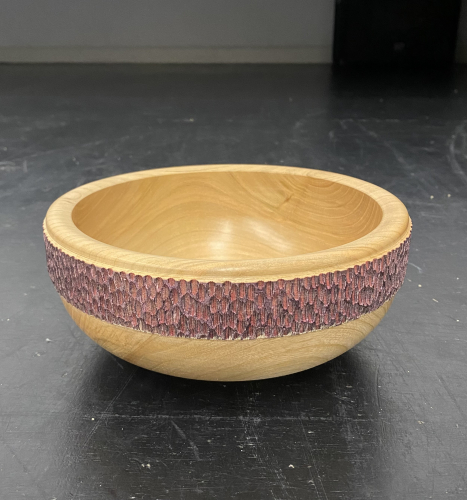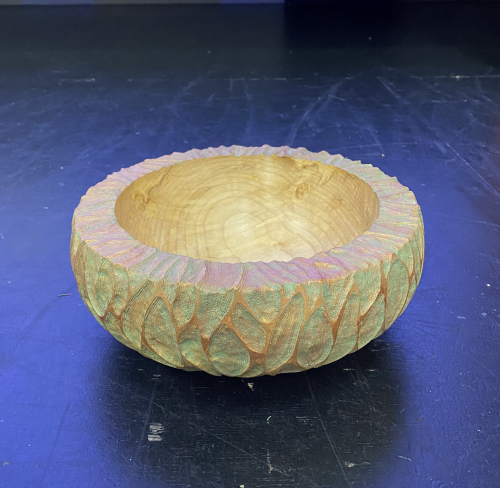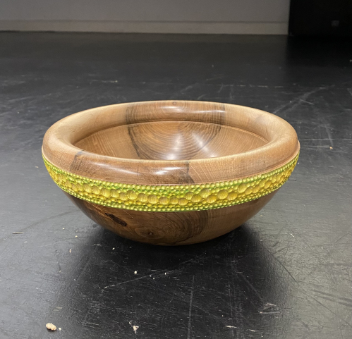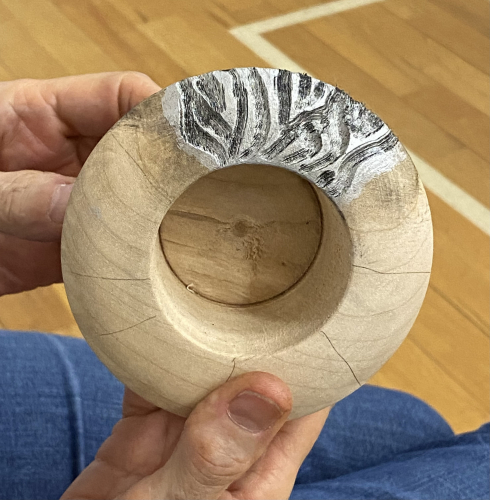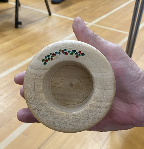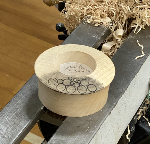 When complete and sanded he used hole punches of different sizes to create a pattern on the rim.